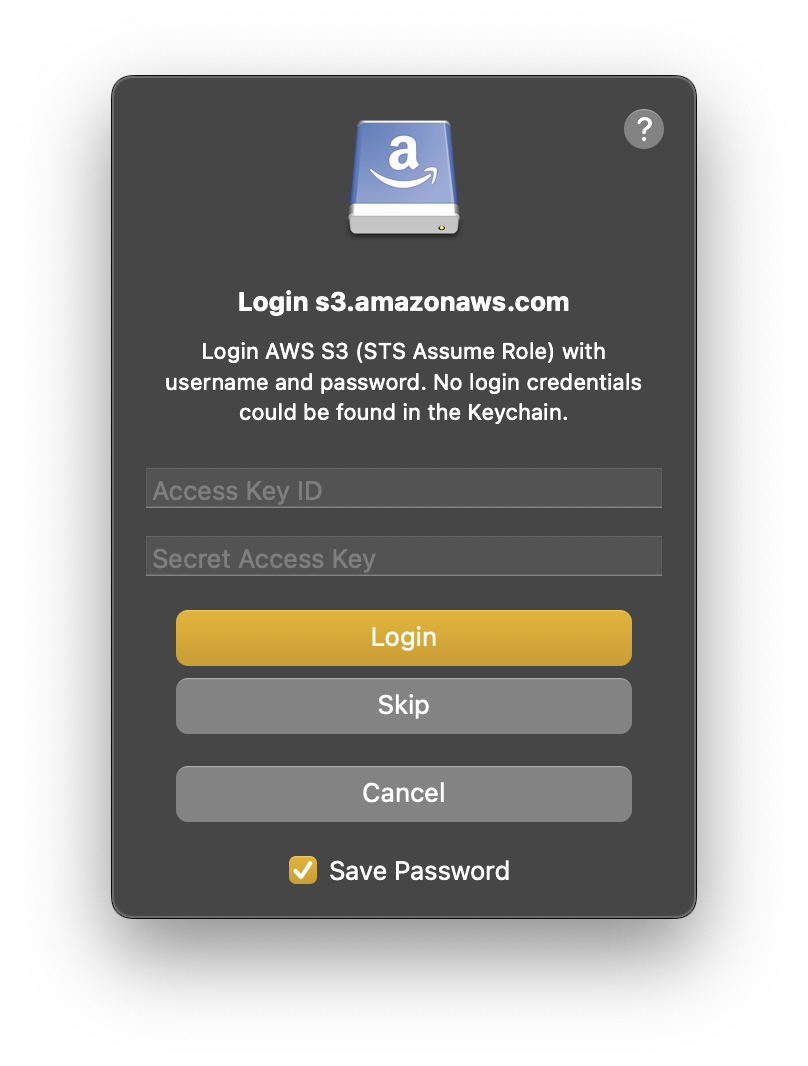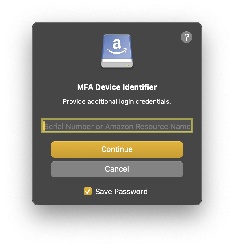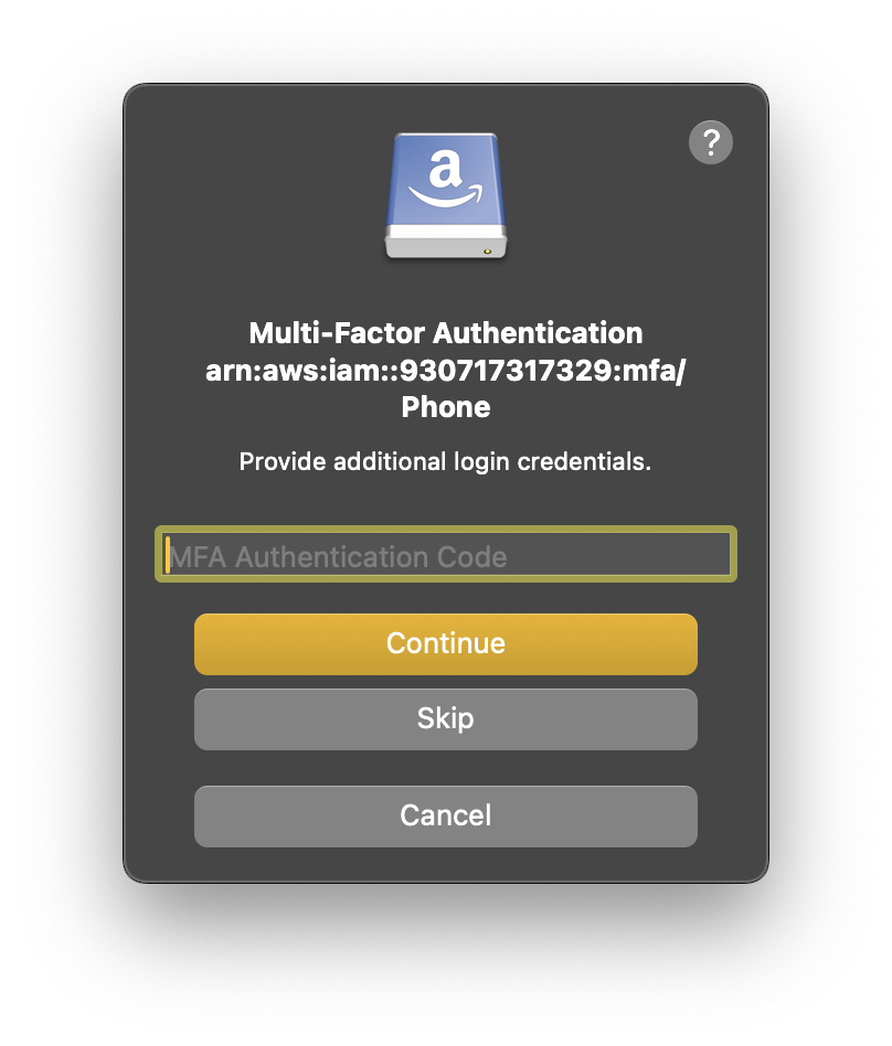 role_arnandmfa_serialto a custom connection profile to skip the prompts on connect.<key>Role Configurable</key> <true/> <key>Multi Factor Configurable</key> <true/> <key>Properties</key> <dict> <!-- Can be left blank to require Role ARN input from user --> <key>role_arn</key> <string>arn:aws:iam::<Account ID>:role/<S3-ROLE-NAME></string> <!-- Can be left blank to require MFA ARN input from user when assuming role requires token from MFA --> <key>mfa_serial</key> <string>arn:aws:iam::<Account ID>:mfa/<MFA-DEVICE-NAME></string> </dict>